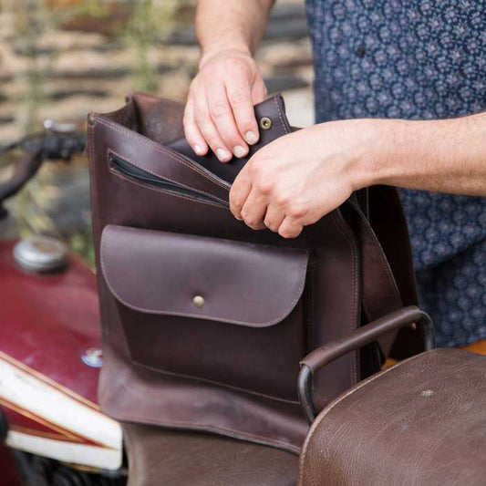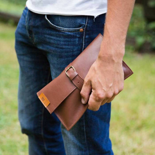Privilégiant du cuir tanné en France, Marie conçoit et confectionne à la main ses articles.