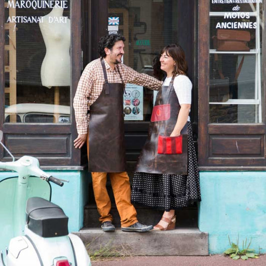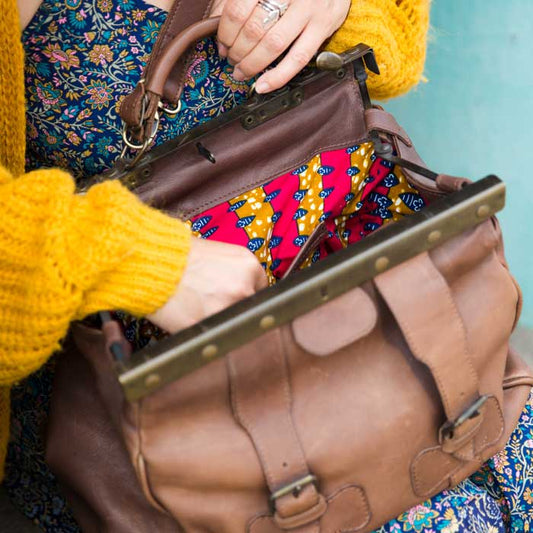 De formation Artisan Créateur en Maroquinerie, elle patronne, coupe, encolle, pique et bichonne ses modèles en mêlant durabilité et originalité